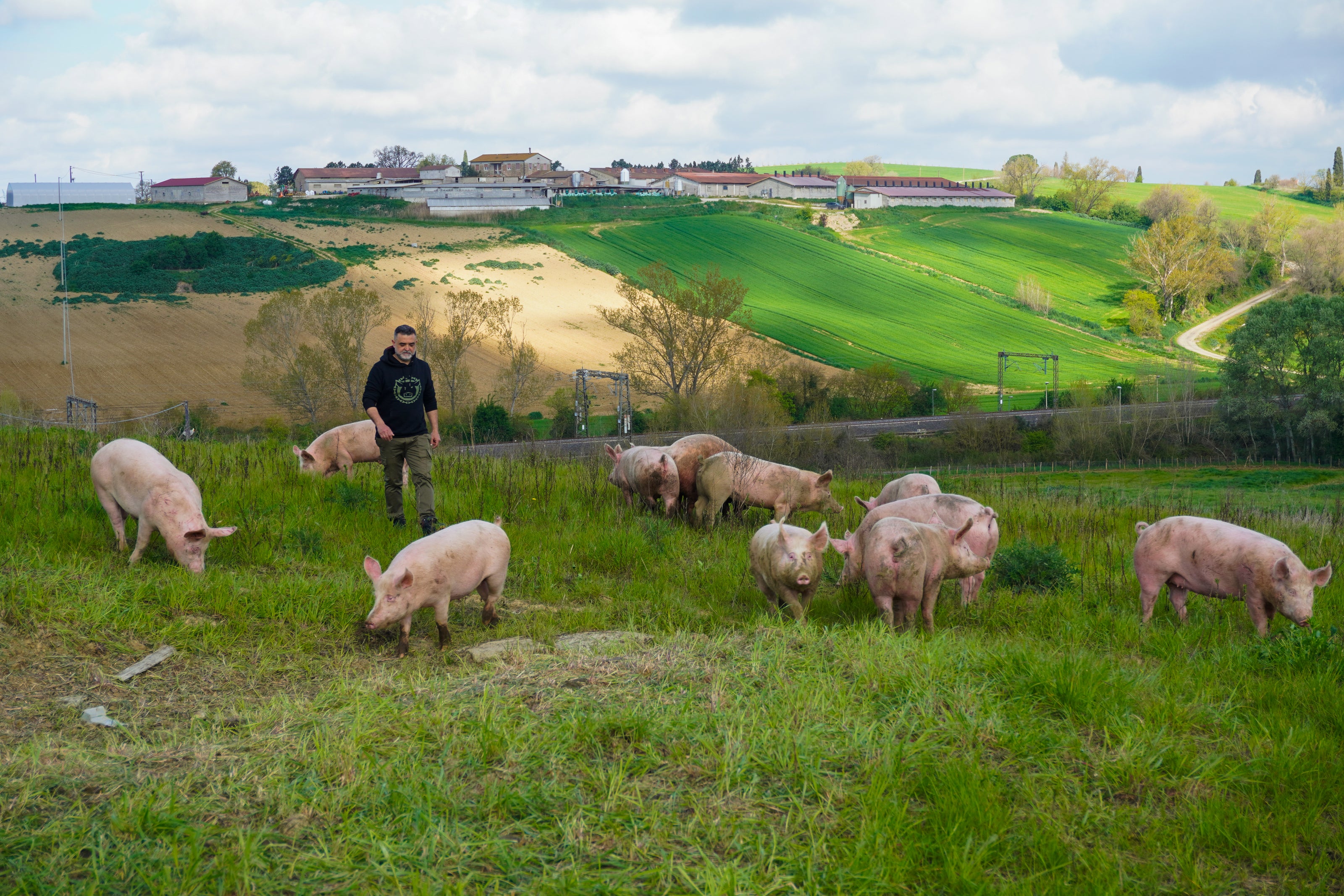 Alleviamo i nostri maiali di altissima qualità, all'aperto, liberi di dormire sotto le stelle, liberi di correre, liberi di rotolarsi nel fango e grufolare tutto il giorno.
